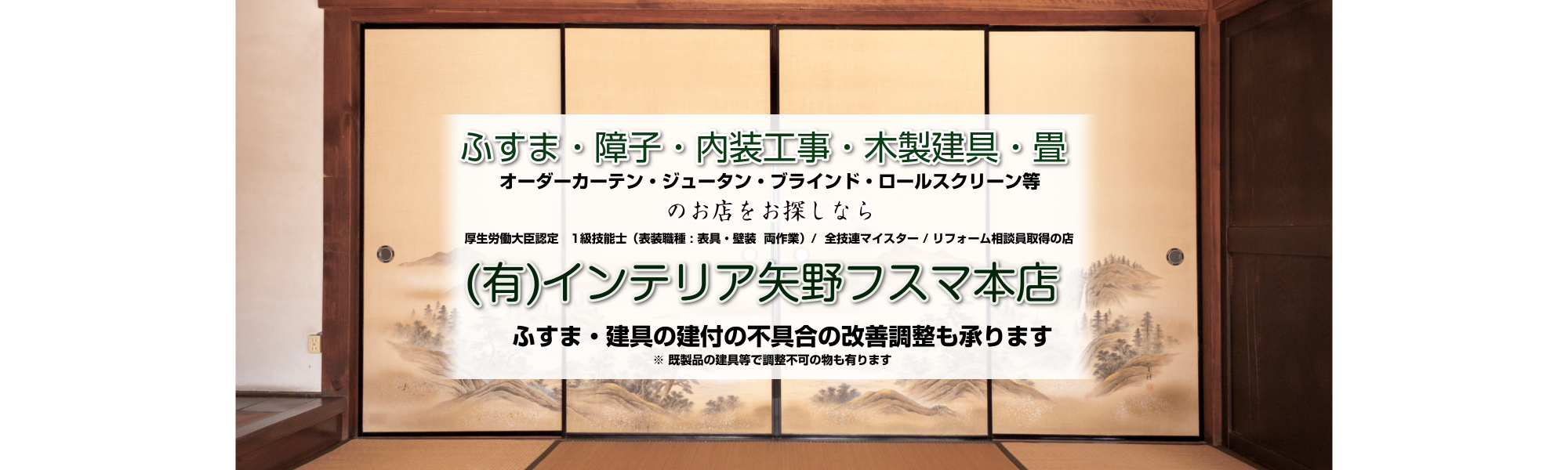 当社は、創業から80数年の間、創業当初は表装(掛軸・屏風など)を中心に表具屋として営み、昭和40年代頃からは、ふすまの製作・張替を中心としたふすま屋として営んでまいりました。平成5年に現在の会社名であります『有限会社インテリア矢野フスマ本店』として法人化し、ふすま・建具・畳・内装リフォーム関係のサービスをご提供させていただいております。